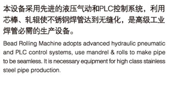 不銹鋼焊管內外焊縫整平裝置是一個內置芯棒并利用軋輥對不銹鋼焊管進行滾壓的往復式自動滾壓裝置。通過控制滾壓強度和道次以達到使不銹鋼焊管內外焊縫整平、去掉內外焊縫余高且與母材平齊的要求。